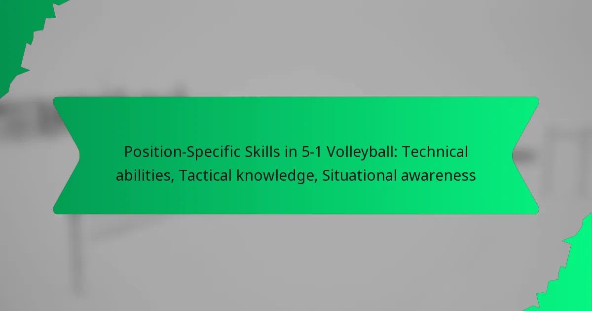 In 5-1 volleyball, each position requires specific technical abilities that contribute to the team’s overall performance. Understanding these skills helps players excel in their roles and enhances team dynamics.
